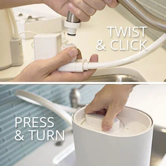 Không cần khoan, đục tường, bếp. Lắp đặt trong 3 phút. Thay lõi lọc 3in1 trong 1 phút.