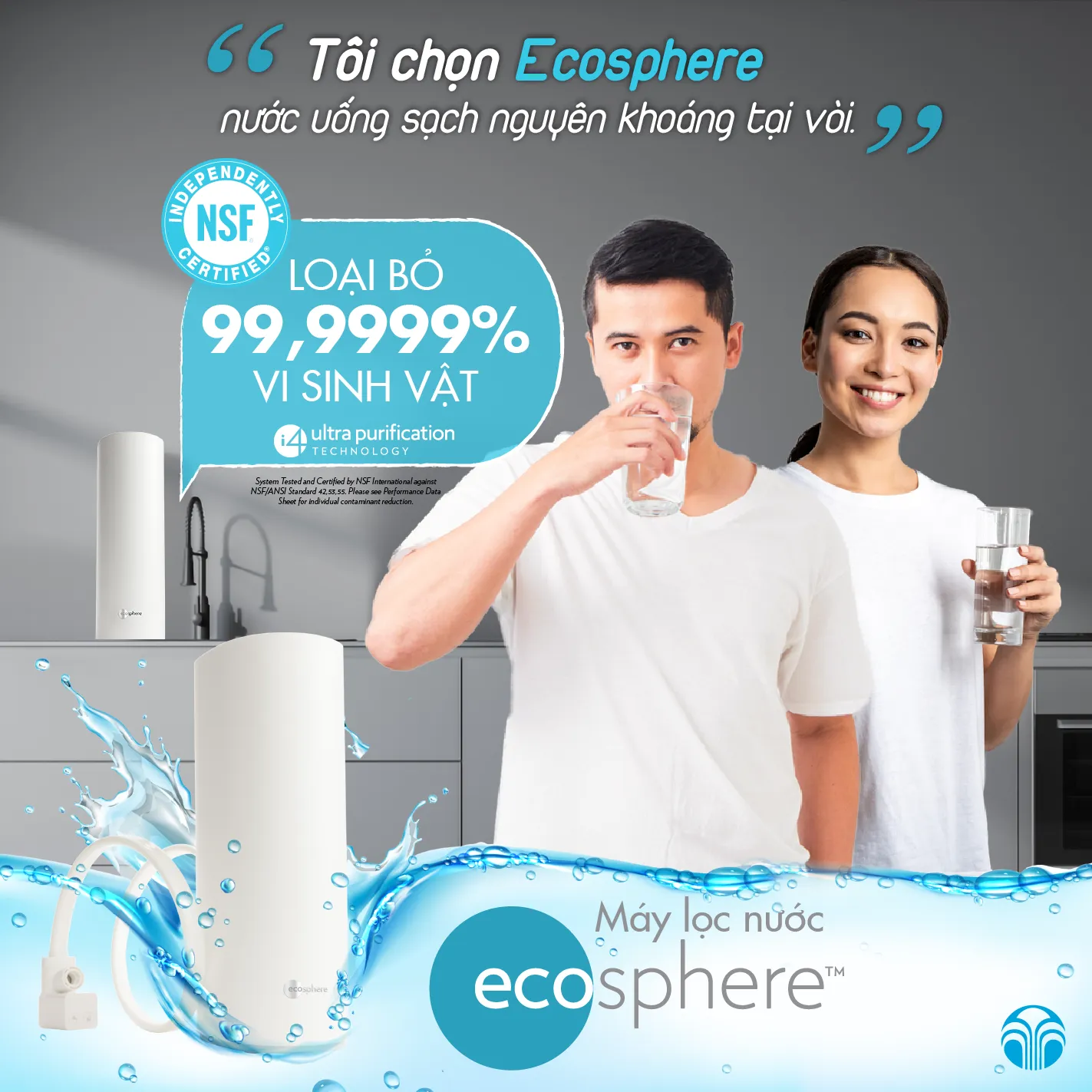 Với 4 bước lọc: màng polypropylene, than hoạt tính, màng PES, UV cathode lạnh